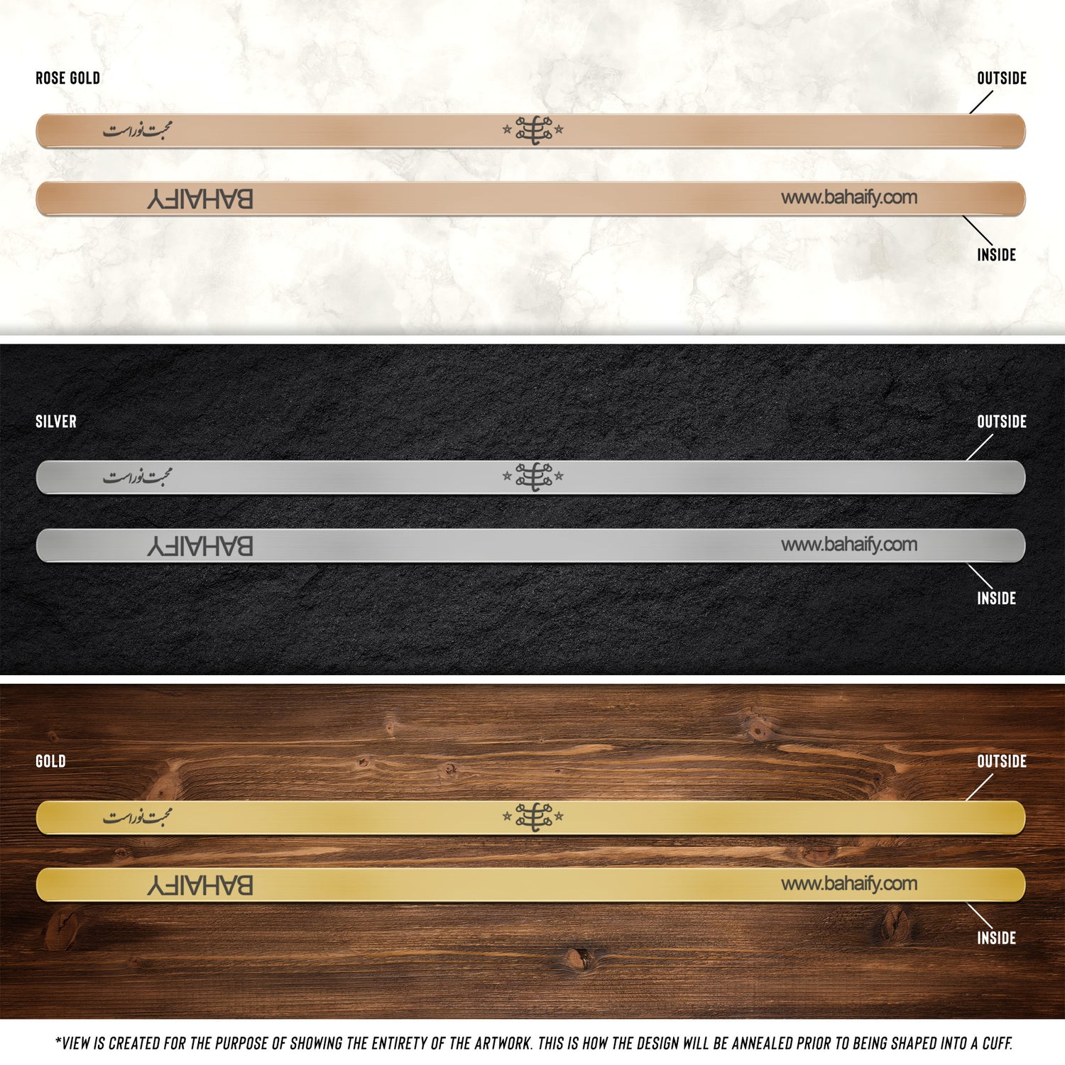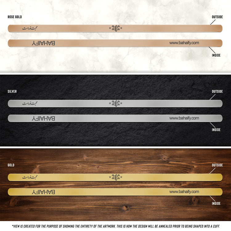 Bahai symbol jewelery, Baha'i 9-pointed star & محبت نور است Cuff Bracelet